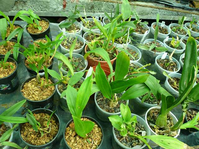 Herr Prof. Dr. Schön und seine zwei Gärtnerinnen tuen alles, damit es den Orchideen gut geht. Die mittelgroßen und großen Orchideen sind bereits umgetopft (in größere Blumentöpfe) und jede Pflanze bekam seine Spezialerde.