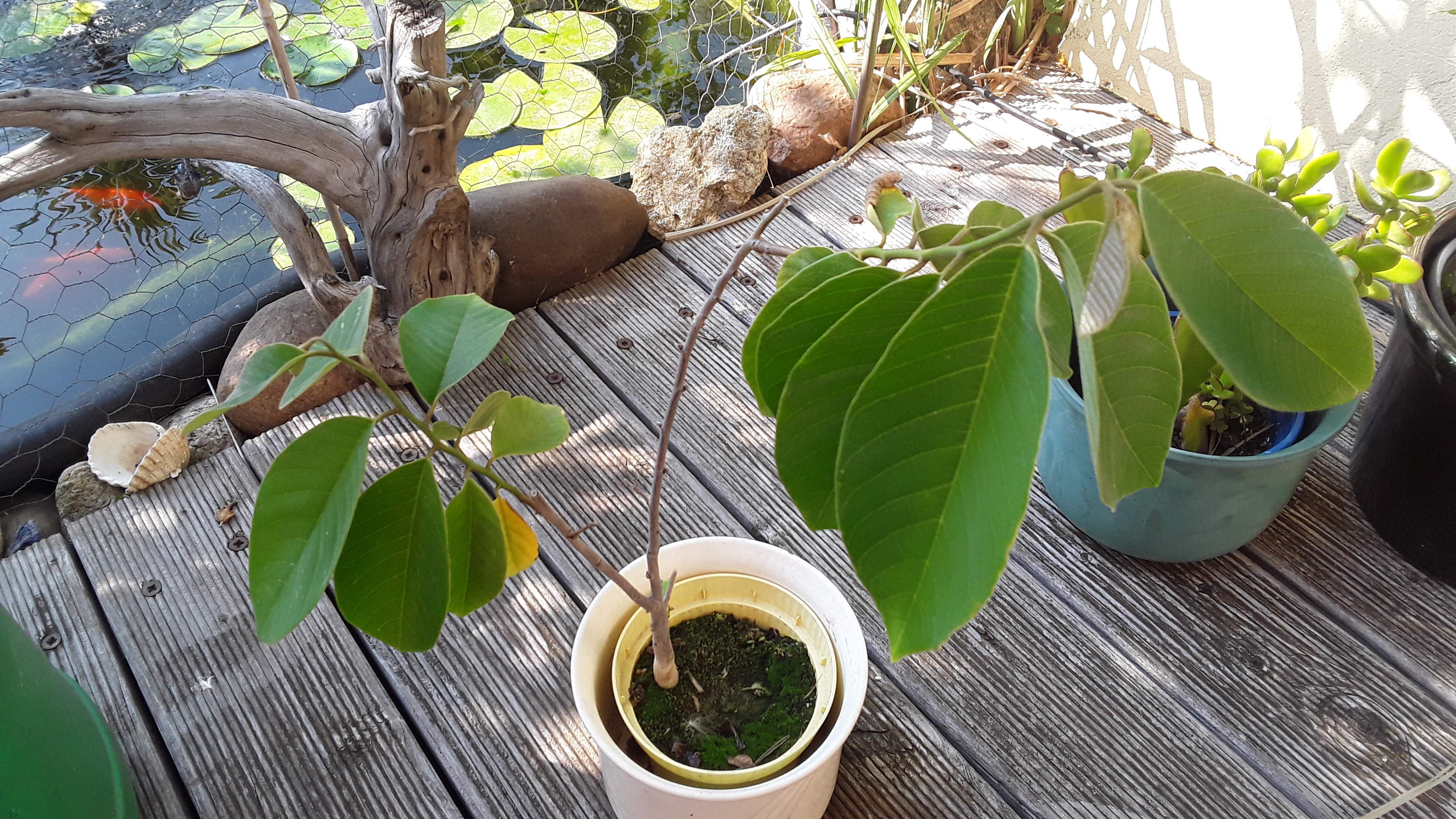 Hallo an alle Nutzer, ich habe ein wahrscheinlich kleines Problem mit der Bestimmung zweier Pflanzen. Ich habe vor einigen Jahren von der Insel einen Zimtapfel mitgebracht und zwei Kerne zum Austrieb gebracht. Leider sehen beide Pflanzen zunehmend unterschiedlich aus, so das ich vermute,dass sich ein anderer Samen darunter gemischt hat. Ich würde nun gern wissen, was da in meinen Töpfen gedeiht. LG und Danke im voraus.