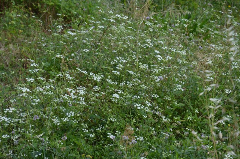 Sehr viel häufiger ist die folgende Art, die man in den unteren Regionen fast überall zu Gesicht bekommt. Diese Pflanze wird deutlich größer und besitzt im Gegensatz zum Knollenkümmel deutlich "borstige" Früchte, wodurch sie eigentlich sehr leicht zu erkennen ist. Allerdings ist es mit den Doldenblütlern so ähnlich wie mit den gelben Korbblütlern, irgendwie sehen sie alle recht ähnlich aus wenn man sich damit noch nie näher beschäftigt hat. Aber vielleicht hat der eine oder die andere ja eine Idee...