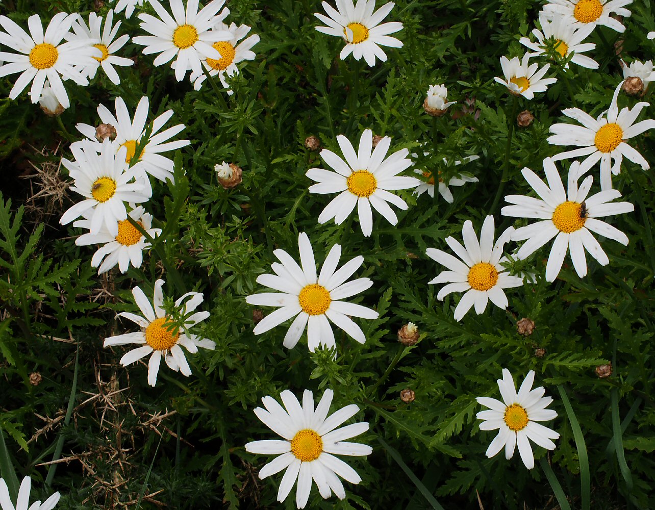 Von unserer Wanderung Boca da Corrida - Boca do Cerro gibt es noch viele weitere Bilder, die ich jedoch zu kennen meine. Um Euch nicht damit zu langweilen, stelle ich sie hier nicht vor. Lediglich bei der beigefügten Argyranthemum frage ich vorsichtshalber noch nach. Von La Gomera ist sie mir als A. pinnatifidum bekannt. Dort wächst sie im Lorbeerwald. Der Madeira-Fundort ist aber Kulturland, passt also nicht so recht. Bei "Was hier alles wächst" ist noch die Rede von der Subspezies montanum, die allerdings erst ab 1500 m vorkommen soll. Das passt also auch nicht wirklich (ca. 1200 m). Kann jemand die Unklarheit beseitigen?