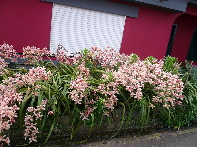 Auf dem Weg in nordöstliche Richtung mit dem Ziel Santana bin ich an ein Haus vorbei gekommen, die meine bisher gesehenen Orchideen übertrumpften. Das Haus wurde mit einer Hecke von Cymbidium – Orchideen gesäumt, die voll in der Blüte stehen.