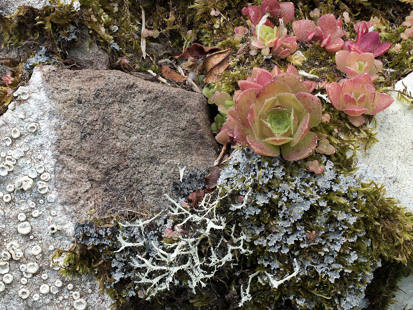 Das beigefügte Äonium war gewissermaßen nur Beifang zu den drei Flechten, sieht aber so hübsch aus, dass ich es hier zwecks genauerer Ansprache vorstelle. (Bei den Flechten tue ich mich leichter ).