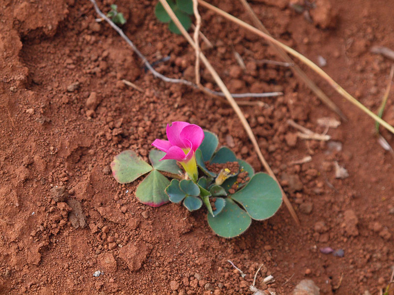 wirklich imposante Blätter. Ist übrigens eine eigene Art, der Breitblättrige Sauerklee (Oxalis latifolia). Wir haben diese Art auch schon öfter mal gesehen, allerdings nie mit so großen Blättern. Habe gerade mal in der Flora Europaea nachgelesen und da steht, dass die einzelnen Teilblättchen eine Größe von bis zu 6x10 cm erreichen können.