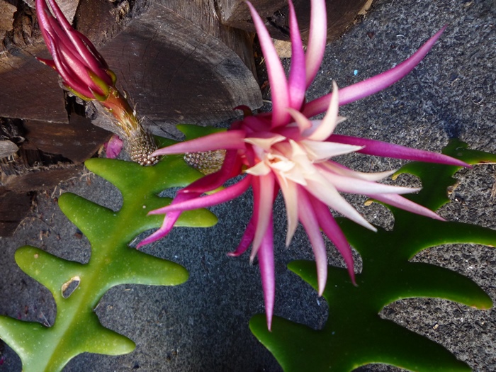 Hallo,dieser Kaktus blüht in diesem Jahr erstmals bei mir: Er gefällt mir auch wegen der gezackten Blätter (im Englischen "Fishbone-cactus").Die Blüten sind sehr kurzlebig wie bei allen Kakteen dieses Typs.Viele Grüße, madBee