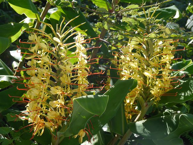 nichts leichter als das: Bei diesem hübsch blühenden, wohl duftenden Gewächs handelt es sich leider um eine invasive Pflanze, die sich im Norden Madeiras und auf den Azoren aggressiv ausbreitet. Sie hat im Sommer (Juli/August) nach unserer Erfahrung die Hauptblütezeit . (Siehst du auch viel auf unserer Boaventurawanderung) . Später hat er meines Wissens rötliche stachlige "Früchte" Der Himalaya-Ingwer, Girlandenblume; Schmetterlingsingwer, Kahili-Ingwer (Hedyichium gardner(i)anum) Roca-da-velha, Conteira lässt sich als Wurzel (Rhizom) wunderbar mitnehmen. Bei mir hat er jetzt das dritte Jahr geblüht- wenn auch immer nur ein Stängel mit Blüte. Im Winter kommt der Topf in den Keller, das Grüne gammelt ab und im Frühjahr wächst ein neuer Stängel mit etwas Glück auch eine Blüte. Bei uns muss man sich wenigstens keine Sorgen machen, dass er alles andere platt macht