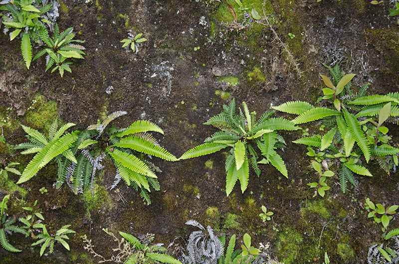 sowie den Rauen Fraunhaarfarn (Adiantum hispidulum), der aus Afrika eingeschleppt wurde und inzwischen an schattigen und feuchten Bereichen der Insel häufig anzutreffen ist. Wenn man das typische Verzweigunsmuster verinnerlicht hat, kann man ihn eigentlich schon von weitem erkennen. Auch wenn dieser Farn nicht besonders groß ist.