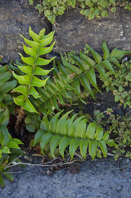 Ein sehr häufiger Farn auf der Insel ist der Rippenfarn (Blechnum spicant), der übrigens auch in Deutschland vorkommt. Er besitzt eine etwas größere ökologische Amplitude und besiedelt sowohl schattige Wälder als auch leicht beschattete Böschung außerhalb von Wäldern, wo er nicht selten mit mehreren Exemplaren vertreten ist.