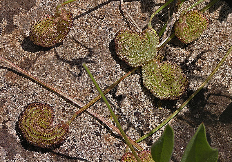 Eine recht häufige Pflanze, die jedoch auf Grund ihrer geringen Größe nicht immer sofort gesehen wird, ist der Stachelige Skorpionsschwanz (Scorpiurus muricatus).