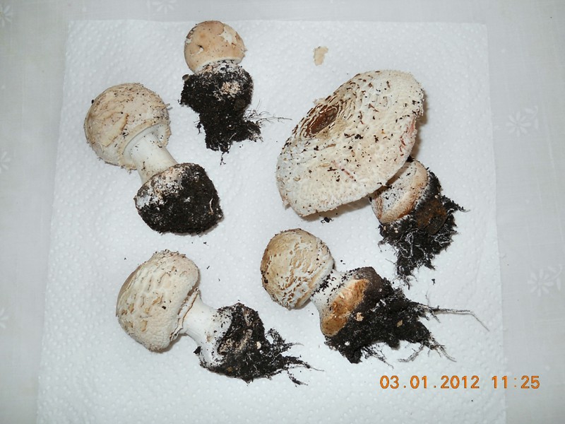 Ich persönlich halte Gerhards Pilze für Champignons. Wenn man Kuhdung verwendet, findet man nach einiger Zeit auch immer Champignons dort, wo er ausgestreut wurde. Gekaufte Blumenerde sollte allerdings eigentlich steril sein.