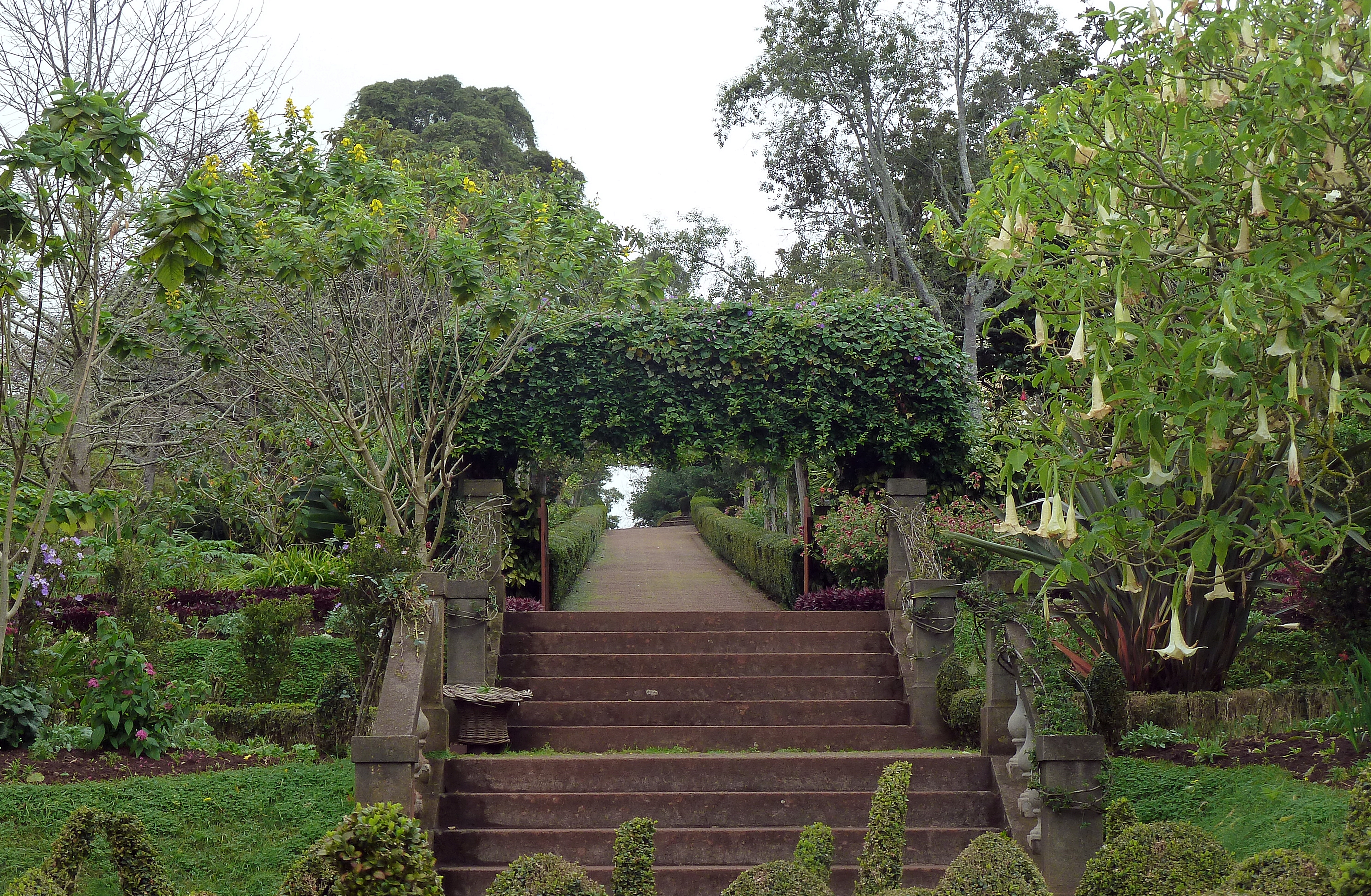 nachdem ich nach einem Besuch der Quinta dos Saltos (Orchideen) so begeistert gewesen bin, wollte ich unbedingt noch einen blühenden Pflanzengarten besichtigen. Die Damen der Hotelrezeption haben mir die Palheiro Gardens empfohlen und nächsten Tag ging es gleich los. Von der Hafenpromenade in Funchal kommt man mit Bus 37 bzw. 36 leicht hin (gegenüber der Palheiro Gardens ist die Bushaltestelle). Als ich angekommen bin (Eintritt 10,50 €) war ich zunächst wenig begeistert, da der Eingangsbereich einen mehr verwilderten Eindruck machte. Aber die Aussichten auf Funchal ließen die Einöde schnell vergessen. Nach einer Weile offerierten sich die ersten gepflegten Grünanlagen. Für Wanderfreunde gibt es sogar ein „Ribeiro do Inferno“, aber dieser Weg ist nicht mit „Stöckelschuhen“ zu bewältigen. Mehr und mehr zeigten sich die gepflegten Rabatten und in dem Garten befinden sich neben einer Kapelle, Teehaus auch künstlich angelegte Wasserläufe, die harmonisch in die Natur eingebettet sind. Besonders hat mir der Rosengarten gefallen (Bild 10 und 11), da dort sehr seltene Rosenarten zu sehen waren. Liebenswerte Teiche mit Fröschen und Seerosen bzw. hübsch verschnittene Hecken und Sträucher runden den Besuch ab. Schattenspendend wirken alte, große Bäume mit riesigen Baumstämmen. Noch heute wohnt die Familie Blandy in der hiesigen Quinta und das Areal ist durch „privat“ abgesperrt. Unmittelbar befindet sich auch das Hotel Casa Velha bzw. der Palheiro Golf. Persönlich habe ich mehr Schilder erwartet, so dass man zumindest über die Pflanzennamen informiert wird. Zwar ist im Hochsommer vieles verblüht gewesen (der Garten soll ja ein Mekka für Kamelienfans sein, die von November bis April blühen), aber trotzdem lohnt sich ein Besuch. Der Park ist Anfang August fast menschenleer gewesen und man konnte die Ruhe der Natur genießen.