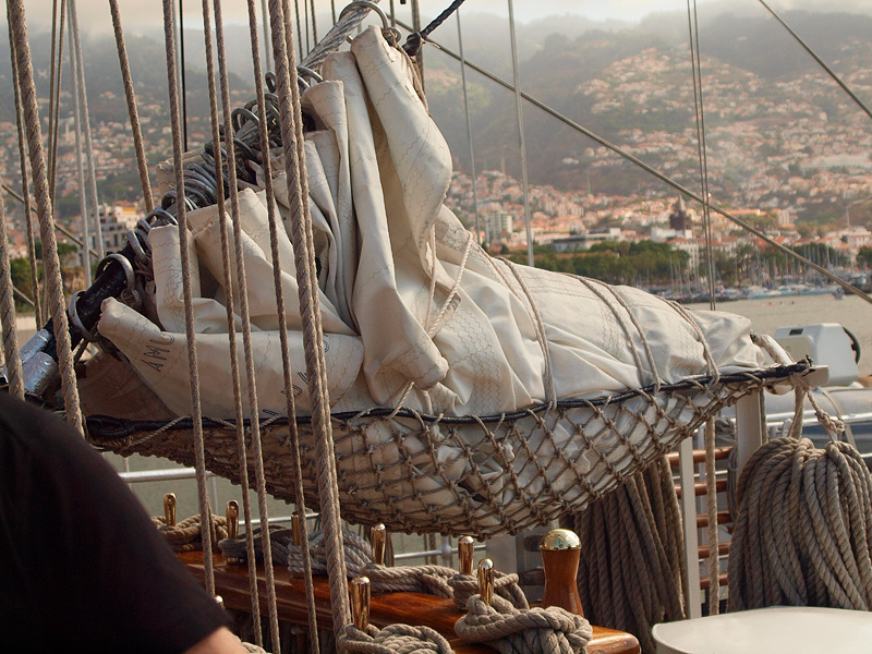 Heute morgen haben wir uns das Schulschiff "Sagres" von der port. Marine angeschaut. Alles war supersauber und poliert. Die Universität hat sogar einen kleinen Heli fliegen lassen, um zu filmen. Vielleicht finde ich ja den Film später und füge ihn dann mit dazu.