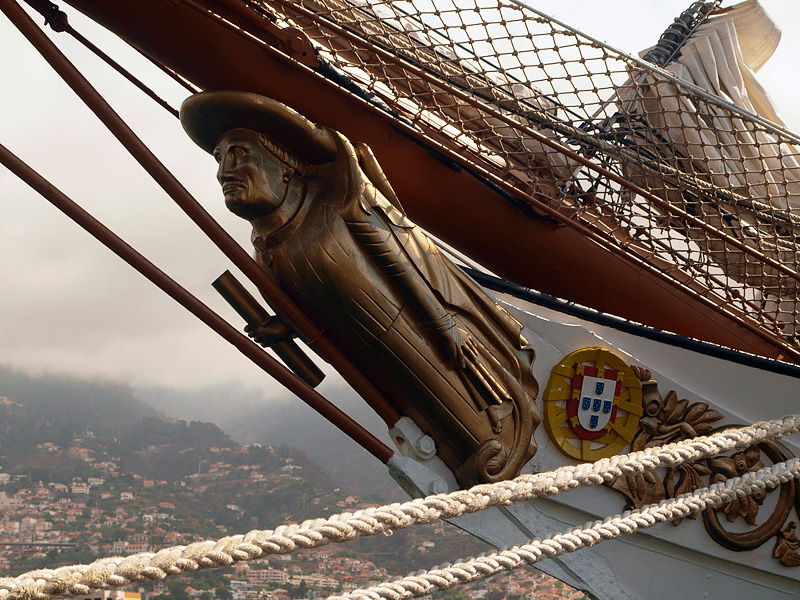 Die Sagres scheint mir ziemlich baugleich zu sein mit der Gorch Fock. Ausnahme die Gallionsfigur: hier Heinrich der Seefahrer, auf der Gorch Fock der Albatros.