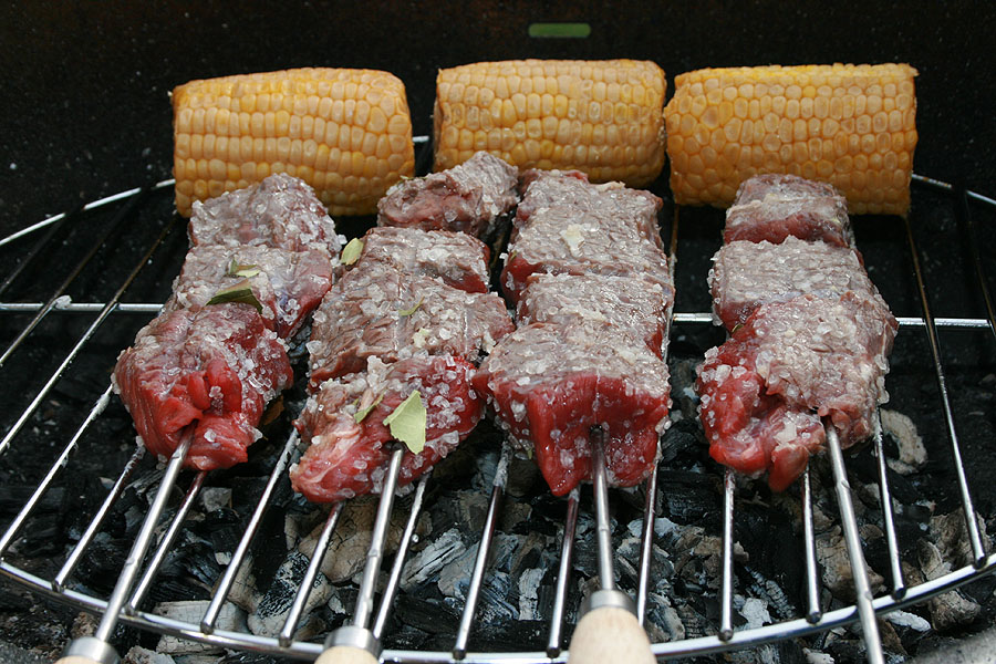 Gestern haben wir endlich die Zeit gefunden, auch einmal selbsgemachte Spieße auszuprobieren. Wir haben alle hier genannten Tipps ausprobiert. Aber genau wie Boernie schreibt, auch bei uns bleib zu viel Salz dran, und das trotz abklopfen. Es klebte einfach super gut...