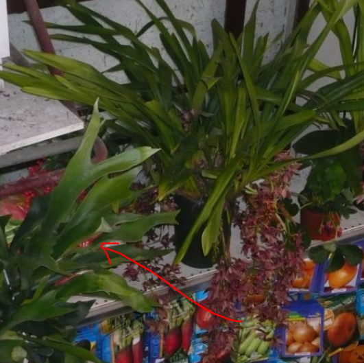 ----- edit Ach, gerade sehe ich den Pfeil... Wieder zu schnell losgelegt... Das sieht mir sehr nach etwas anderem aus. Jedenfalls ist das KEINE Orchidee Mir fällt jetzt nur nicht mehr ein, ob es ein Farn oder eine Art Tillandsie ist... Ich recherchiere nochmal-aber vielleichtt ist jemand schneller