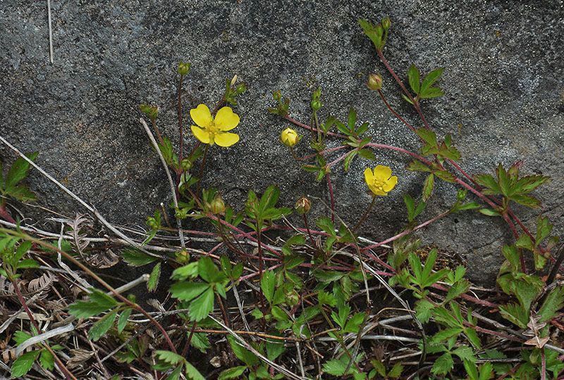 Auf Fingerkraut kam ich gleich An Potentilla konnte/musste ich mich wieder erinnern Die Scheinerdbeere Potentilla Indica hat "in Schwaben" allerdings 5 Blütenblätter- P heptaphylla und P. reptans ebenso Es könnte dann die Potentilla indica sein oder eine mutierte "kriechende Blutwurz" LG iris