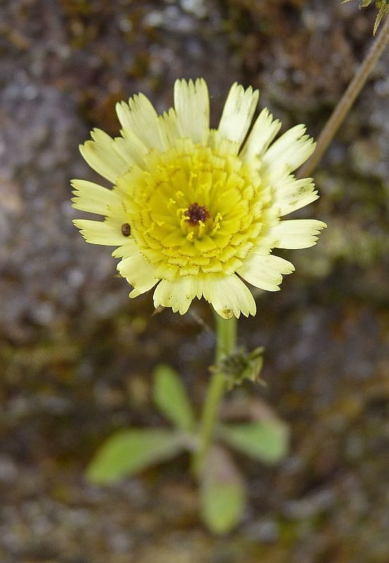 der Bartpippau isset. Genauer gesagt der Echte Bartpippau (Tolpis barbata), der im westlichen Mittelmeerraum recht weit verbreitet ist. Noch etwas jung und von daher auch nicht ganz so leicht zu erkennen, aber bei einer Ausschnittsvergrößerung lassen sich die borstenförmigen Hüllblätter unterhalb des Blütenstandes zumindest schon erahnen.
