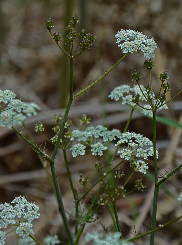 Sehr viel häufiger ist die folgende Art, die man in den unteren Regionen fast überall zu Gesicht bekommt. Diese Pflanze wird deutlich größer und besitzt im Gegensatz zum Knollenkümmel deutlich "borstige" Früchte, wodurch sie eigentlich sehr leicht zu erkennen ist. Allerdings ist es mit den Doldenblütlern so ähnlich wie mit den gelben Korbblütlern, irgendwie sehen sie alle recht ähnlich aus wenn man sich damit noch nie näher beschäftigt hat. Aber vielleicht hat der eine oder die andere ja eine Idee...
