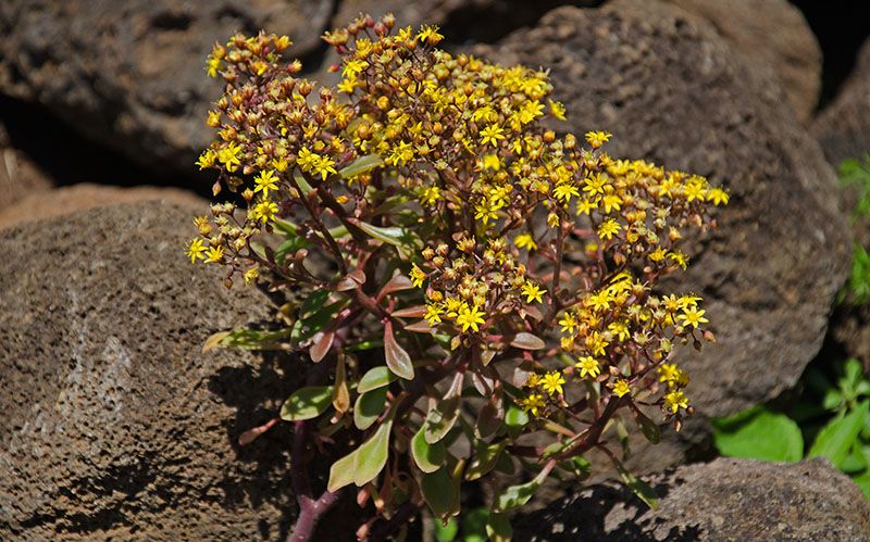 Der Name "Fetthenne" ist übrigens streng genommen für die Gattung Sedum reserviert, aber wie ich auch schon mal woanders geschrieben habe, braucht man es mit den deutschen Namen eigentlich nicht so eng zu nehmen. In der Kanaren-Flora von Schönfelder wird die Gattung etwas wenig fantasievoll mit dem Namen "Aichryson" übersetzt. Nun ja, da geht "Fetthenne" zumindest etwas flüssiger über die Lippen...