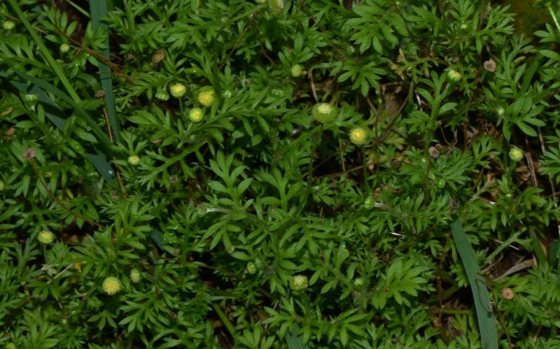 die Australische Margarite oder auch Laugenblume (Cotula australis) hätte ich auch in das Thema mit den Winzlingen stecken können, da sie doch recht unauffällig ist. Wie der Name schon andeutet, stammt sie ursprünglich aus Australien und Neuseeland. Keine Ahnung was dort ihre bevorzugten Standorte sind, aber auf Madeira findet man sie häufig in Pflasterfugen in Bereichen, die nicht ganz so stark betreten werden.