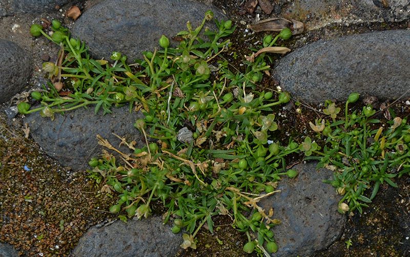 Bei Pflasterfugen (Kopfsteinpflaster oder auch andere Pflasterungen) handelt es sich nun um einen vom Menschen geschaffenen Sonderstandort, der von einigen Pflanzen dankend angenommen wurde. Insbesondere von den sogenannten Omega-Pflanzen, Arten von geringer Statur und erhöhter Trittfestigkeit, die sich in den Fugen verstecken, wo sie dann auch nicht von konkurrenzstärkeren Arten belästigt werden können. Ähnlich verhalten sich die beiden folgenden Pflanzen, mit denen sich jetzt aber nicht wirklich einer von euch rumschlagen muss. Also einfach heftig mit dem Kopf schütteln, falls keine zündende Idee kommt.