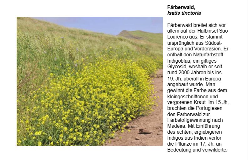 Das ist interessant, Färberwaid wurde ja auch von den ersten flandrischen und portugiesischen Siedlern auf den Azoren kultiviert. Hier hab ich auch noch was aus dem Madeira- Bilderbuch eines Phyto- Arbeitskreises (https://ggtm.de/index.php?s=file_download&id=470) gefunden: