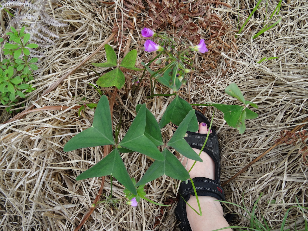 wirklich imposante Blätter. Ist übrigens eine eigene Art, der Breitblättrige Sauerklee (Oxalis latifolia). Wir haben diese Art auch schon öfter mal gesehen, allerdings nie mit so großen Blättern. Habe gerade mal in der Flora Europaea nachgelesen und da steht, dass die einzelnen Teilblättchen eine Größe von bis zu 6x10 cm erreichen können.