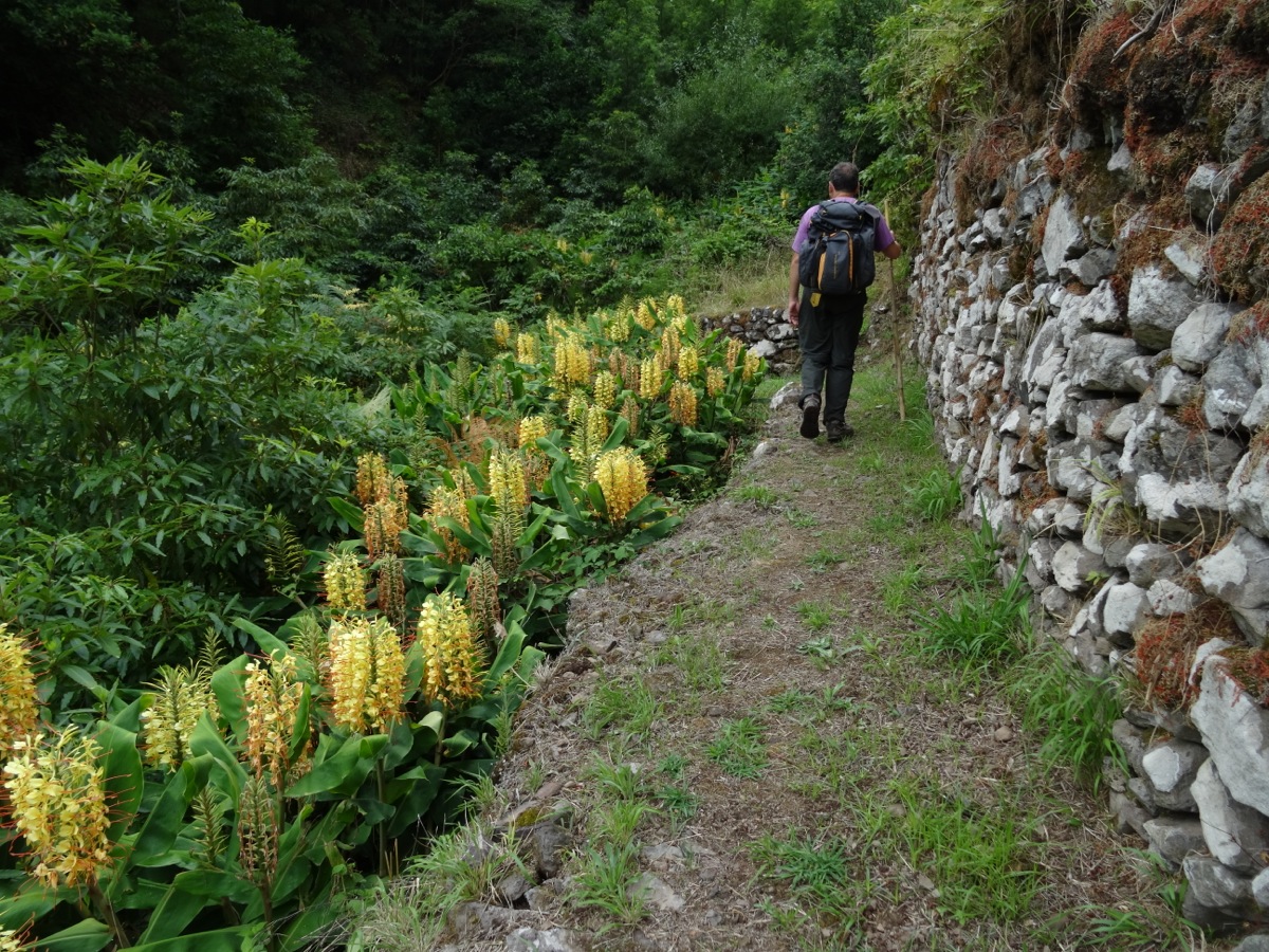 nichts leichter als das: Bei diesem hübsch blühenden, wohl duftenden Gewächs handelt es sich leider um eine invasive Pflanze, die sich im Norden Madeiras und auf den Azoren aggressiv ausbreitet. Sie hat im Sommer (Juli/August) nach unserer Erfahrung die Hauptblütezeit . (Siehst du auch viel auf unserer Boaventurawanderung) . Später hat er meines Wissens rötliche stachlige "Früchte" Der Himalaya-Ingwer, Girlandenblume; Schmetterlingsingwer, Kahili-Ingwer (Hedyichium gardner(i)anum) Roca-da-velha, Conteira lässt sich als Wurzel (Rhizom) wunderbar mitnehmen. Bei mir hat er jetzt das dritte Jahr geblüht- wenn auch immer nur ein Stängel mit Blüte. Im Winter kommt der Topf in den Keller, das Grüne gammelt ab und im Frühjahr wächst ein neuer Stängel mit etwas Glück auch eine Blüte. Bei uns muss man sich wenigstens keine Sorgen machen, dass er alles andere platt macht