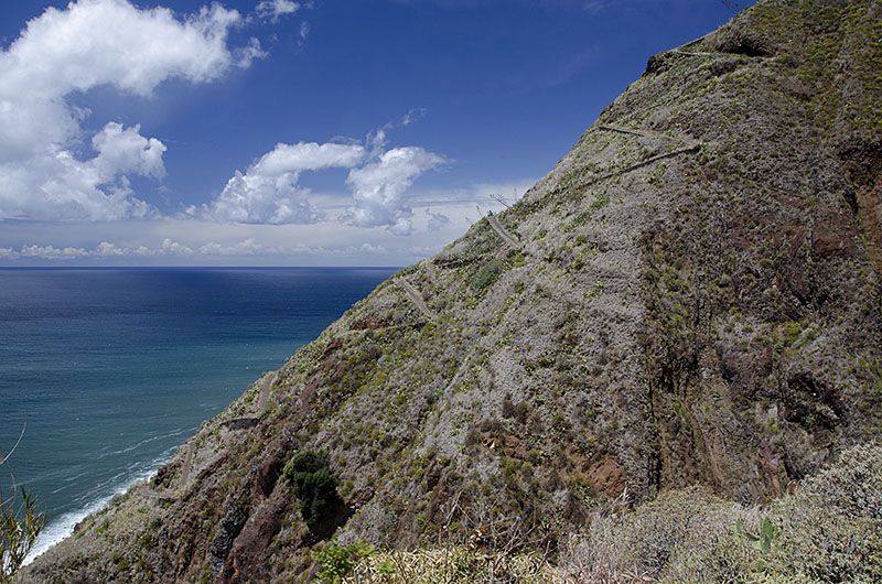 @Iris: Euren Weg werden wir wohl erstmal auf die lange Bank schieben. Die botanischen Anhängsel erwecken doch zu sehr den Eindruck ziemlich hartnäckig zu sein. Endemisches war wohl nicht dabei. Die Evolution ist zwar sehr erfinderisch, aber Samenverbreitung durch Touristen steht vermutlich noch nicht auf ihrer Liste. Sieht eher so aus als wärt ihr vom (wilden) Hafer gestochen worden. Auf zwei Fotos kann man aber den von uns erwähnten Serpentinenweg erahnen, der direkt hinter dem Hotel am westlichen Ende von Paul do Mar beginnt (bzw. endet).
