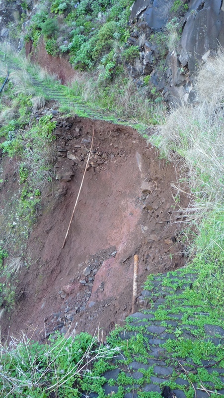 Der Weg ist trotzdem noch ausreichend breit, aber schade um den schönen Pflasterweg. Die Wiederherstellung wird viel Arbeit kosten.