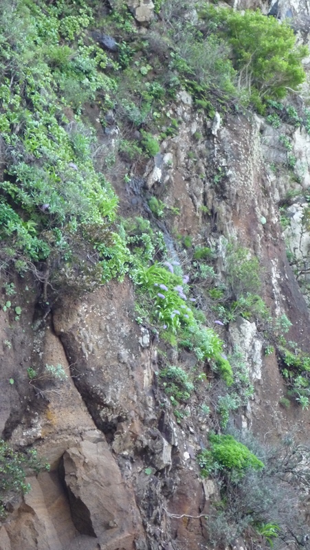 Nun aber zur Botanik. Man bewegt sich auf beiden Abschnitten durch eine Vegetation, die typische für die küstennahen Bereiche ist und streckenweise auch recht naturnah sowie endemitenreich ausgebildet ist. Diese Vegetation ist durch Besiedlung und Umwandlung in Kulturlandschaft stark dezimiert worden und man findet sie fast nur noch in Regionen, wo der Anbau von Nahrungsmitteln kaum Sinn macht. Man trifft viele alte Bekannte, wie z.B. die Fischfang-Wolfsmilch (Euphorbia piscatoria), von der es insbesondere am "Faja-Weg" uralte und knorrige Exemplare gibt.