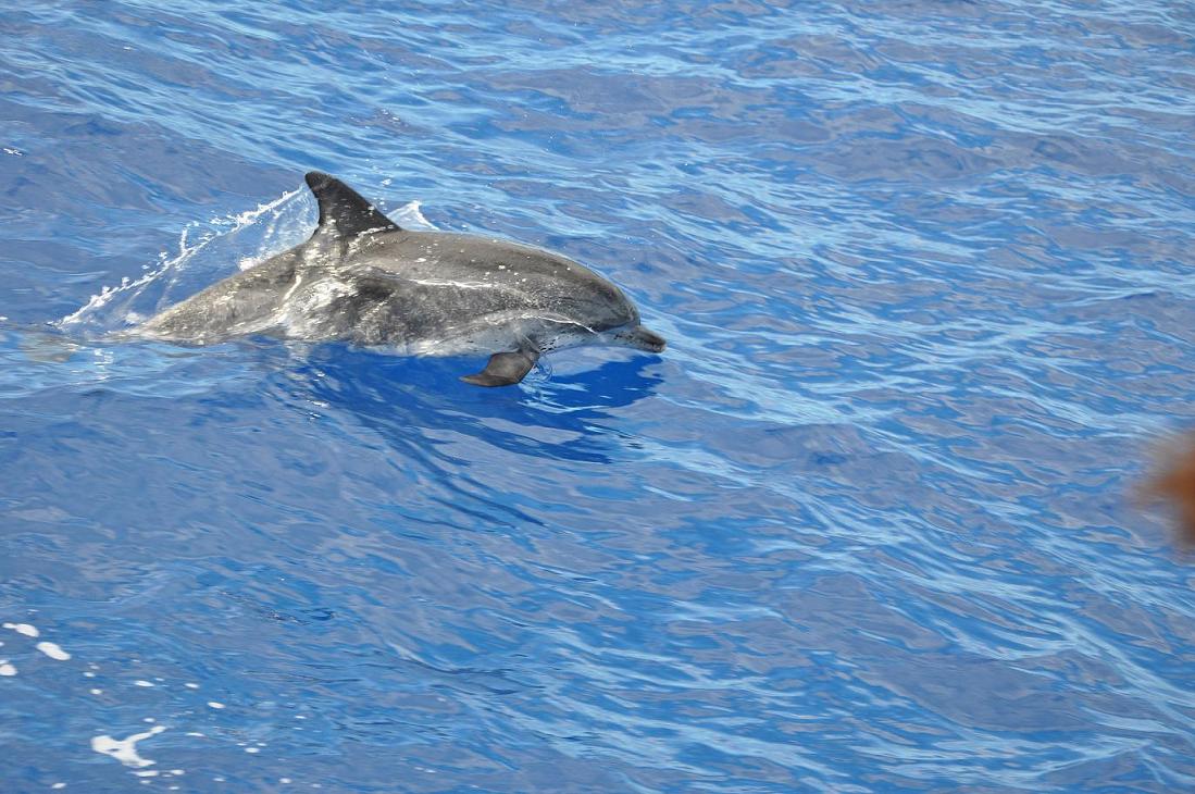 Wale haben wir leider nicht zu sehen bekommen. Das Problem auf unserer Tour war halt, dass diverse Anglger mit ihren Booten unterwegs waren und relativ lange gesucht werden musste, um die oben zu sehenden Fleckendelfine zu finden. Am Ende hat uns diese Schule von 40-45 Tieren für fast 45 Minuten begleitet. Ich werde die Tage nochmal Bilder raussuchen, um zu zeigen, wie dicht die Delfine am Boot waren...