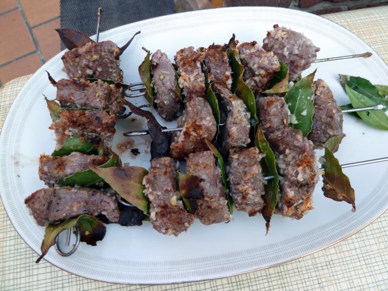 Hallo zusammen, heute gab es wieder die tollen Spieße. Die vom letzten mal übrig gebliebenen frischen Lorbeerblätter hatten wir bis heute in Öl eingelegt.